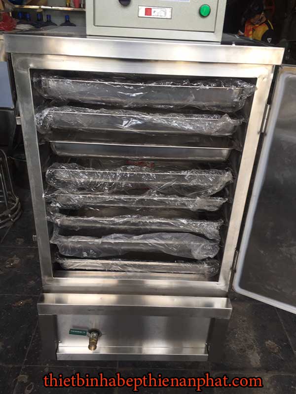 Tủ nấu cơm 40kg được thiết kế dạng đứng, bên trong phân chia các tầng với lượng khay đa dạng, mỗi khay có thể nấu được từ 3 – 5 kg gạo. Năng suất nấu của tủ nấu cơm 40kg là 40 kg/mẻ, tủ gồm có 08 khay.